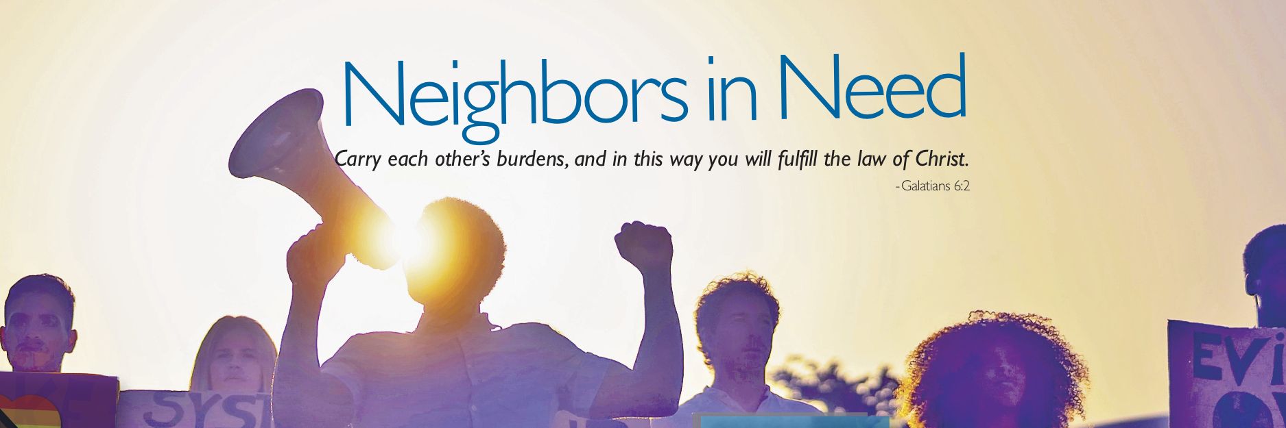 The United Church of Christ (UCC) Neighbors in Need collection is a special annual church offering that raises money to help people and communities in the United States. It provides grants for a wide range of justice and compassion projects. Most of the proceeds go to fund the UCC's Justice and Witness Ministries, which gives grants to local UCC churches and affiliated organizations. These grants support projects that do justice work in their own communities. The types of projects are direct aid, which provides necessities, advocacy to influence policy change, and addressing ongoing issues such as environmental justice, fair wages, and mental health justice.
